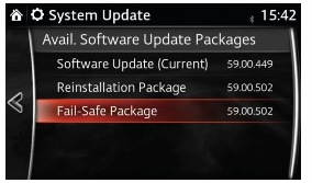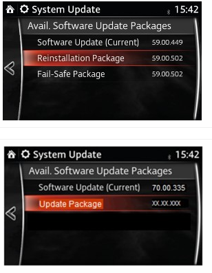 NOTE: “Reinstallation Package” appears when current version is 70.00.110 or before. “Update Package” appears when current version is 70.00.335 or later.(“Fail Safe Package” has been eliminated since 70.00.335. No need to perform Failsafe installation process since then.)