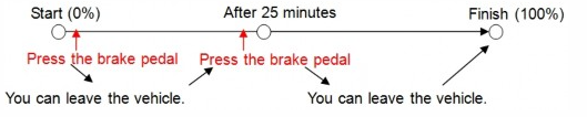 NOTE: In order to avoid ACC power being turned off during update process, press and release clutch pedal (Manual Transaxle) or brake pedal (Automatic Transaxle) after approx. 25 minutes. We strongly recommend to set a timer to 25 minutes.