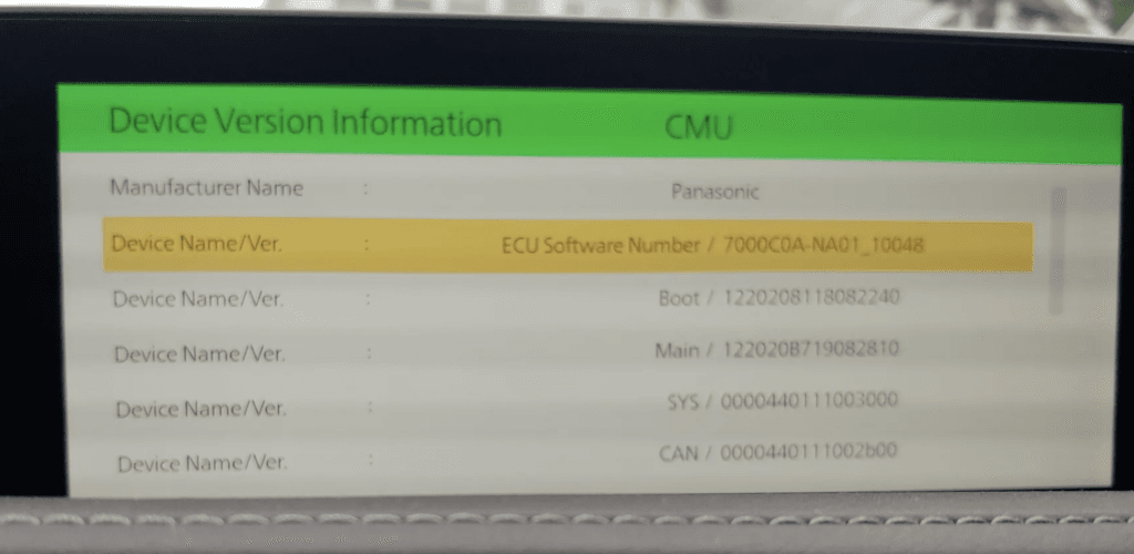 Refer to the screen image above for your CMU device version information. The code, such as 7000C0A-NA01_10048 and lets try to figure what this means: